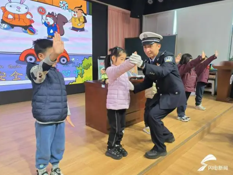 “生動(dòng)活潑,入腦入心”。民警通過(guò)ppt為同學(xué)們介紹了各種常見的交通標(biāo)志、標(biāo)線,例如“一盔一帶”,“安全帶是生命帶”、“細(xì)觀察,不猛跑”等。同時(shí),民警還開展了有獎(jiǎng)互動(dòng),為答對(duì)問(wèn)題的小朋友送上交通安全文創(chuàng)產(chǎn)品。