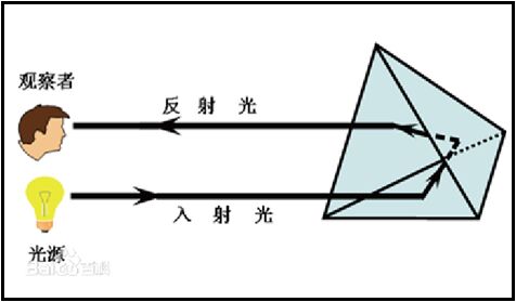 讓一束入射光線從正面照射在反光材料上,經內部折射,再反向穿透反光材料,沿入射光平行的方向反射回來,讓在一定觀察區(qū)域內的觀察者捕捉到反射光,又稱“回歸反射”,屬于被動光源范疇。