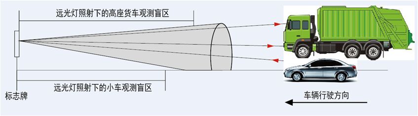 因反光膜的反射光錐視認局限性而導致的安全隱患: