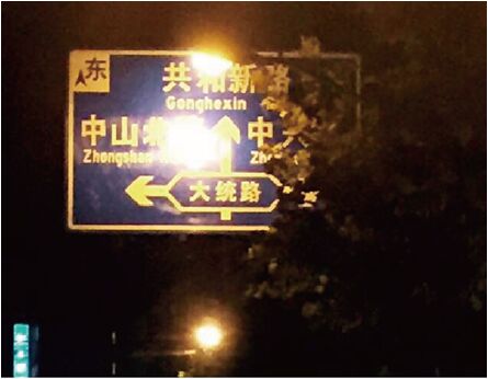 在逆光環(huán)境中,普通逆反射標志幾乎無法辨認,而主動發(fā)光標志卻仍然具有很強的視認效果。在我國東西方向的交通道路中,逆光對標志牌的視覺影響特別嚴重。